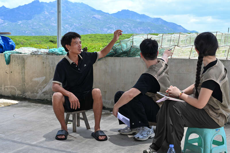 实践队员与村民交流红树林保护与生计发展。陈昱飞供图
