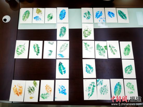 用回收的落叶制作成的“环保感恩卡”。