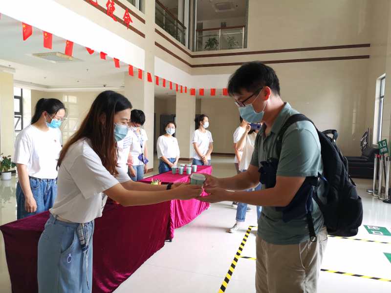 厦大学子为老师敬上一杯暖茶。