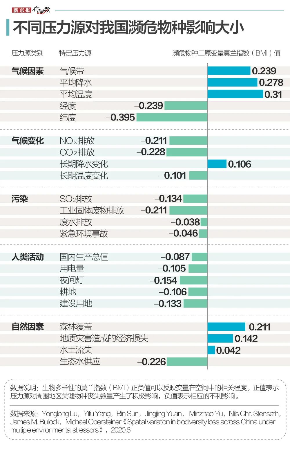 温室气体的排放是导致气候发生变化的主要元凶,夜间光、建筑用地、耕地等活动,直接代表了工业用地和人类活动的强度,人进动物退,对物种数量产生极大的不利影响。