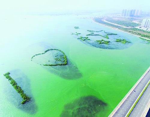 在福建省厦门市下潭尾火炬大桥的一旁,一组由爱心和五星构成的图案向海上延展开来。这幅完全由红树林勾勒的作品,自空中俯瞰,蔚为壮观。