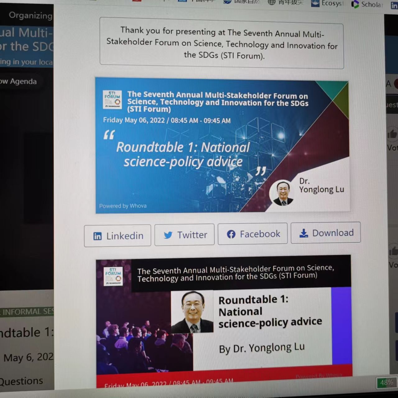 第七届联合国科技创新促进可持续发展目标多利益攸关方年度论坛(Multi-stakeholder Forum on Science, Technology and Innovation for the Sustainable Development Goals,简称STI论坛)于2022年5月5日至6日在联合国纽约线上召开。
