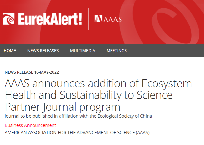 近日,中国生态学学会与美国科学促进会(AAAS)完成签约,国际期刊Ecosystem Health and Sustainability(EHS)加入Science伙伴期刊计划(SPJ),2023年开始将由AAAS出版。
