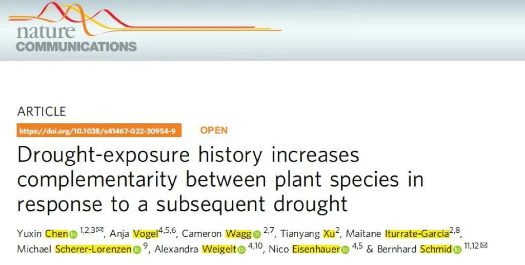 论文的共同通讯作者,瑞士苏黎世大学的Bernhard Schmid教授解释道,“研究结果意味着,若想提高生态系统对未来气候的适应性,不同的植物物种必须共同经历极端气候事件的考验。因此,我们的结果对于气候变化下的生物多样性保护具有重要意义。”