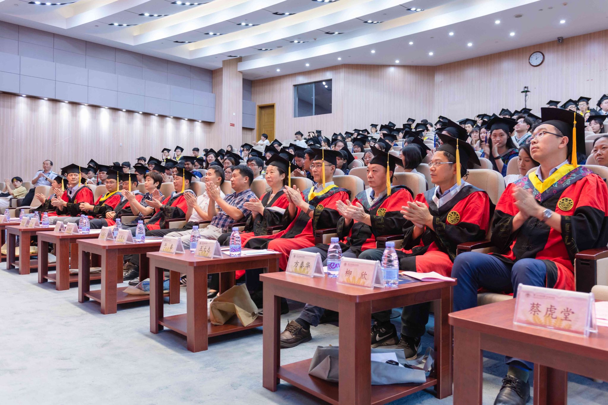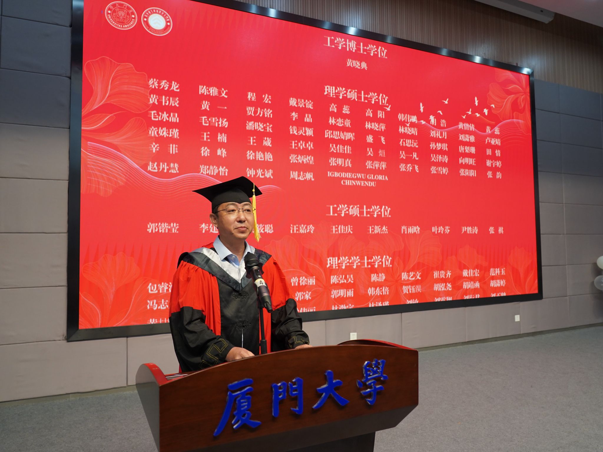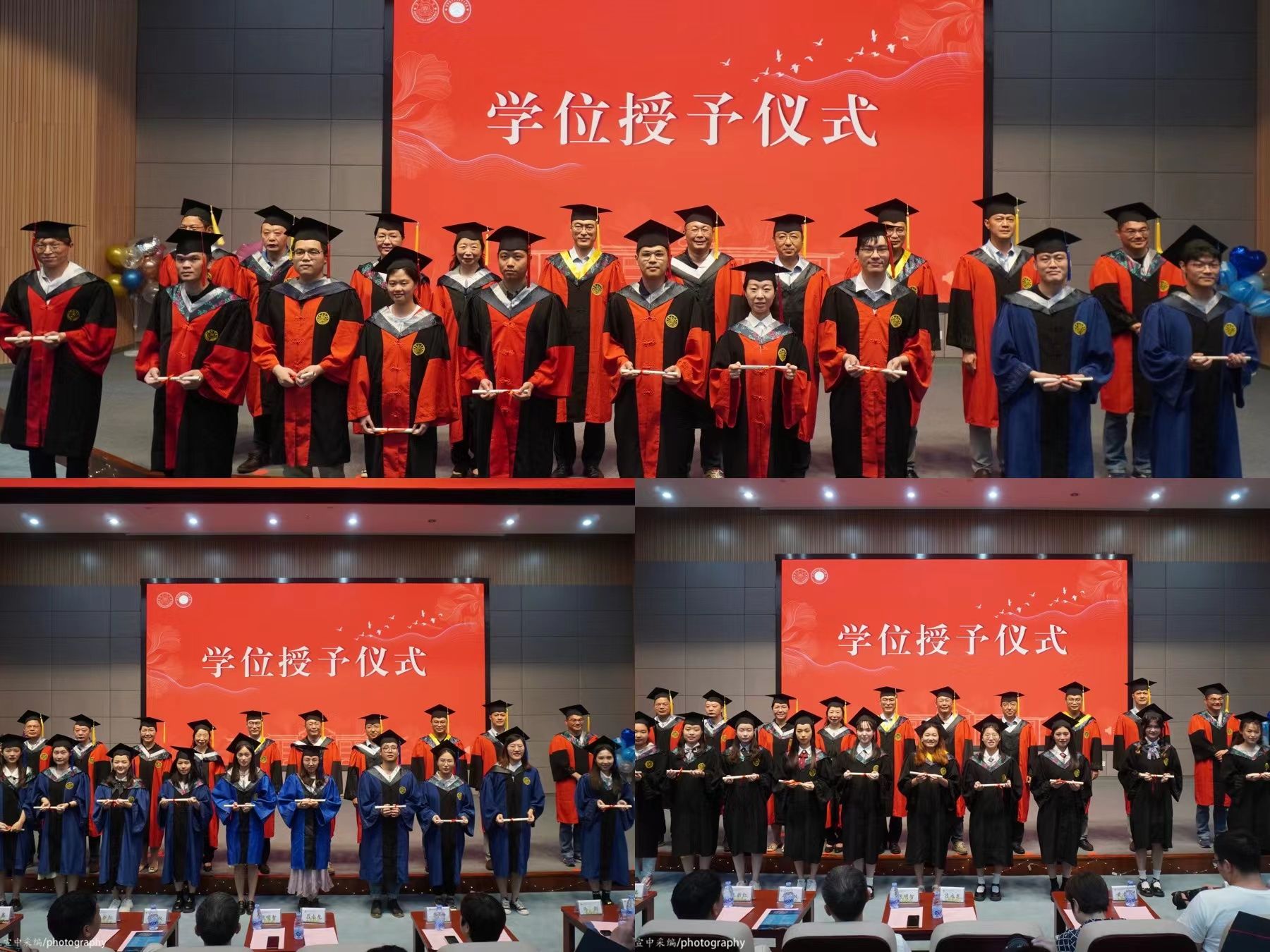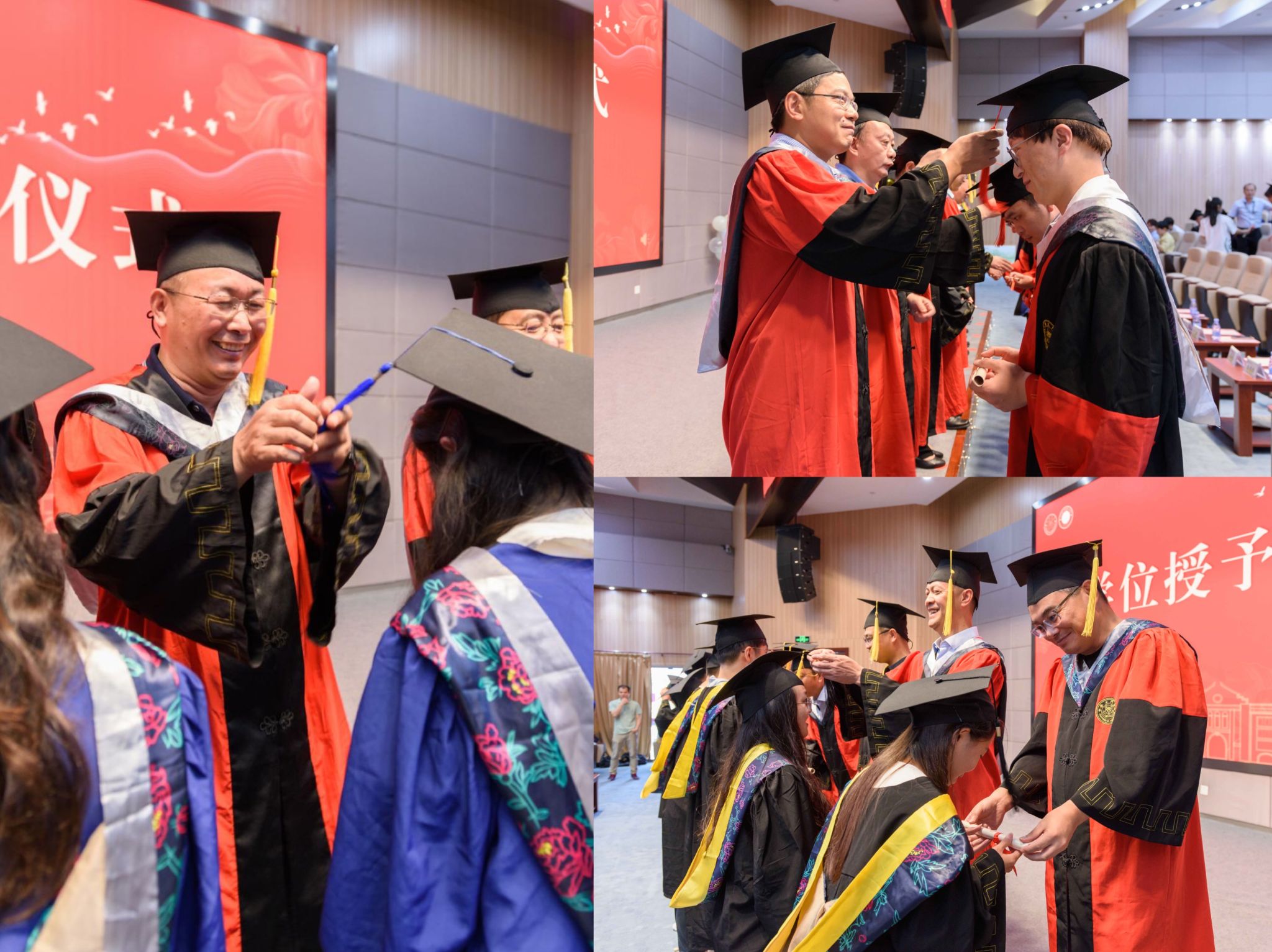 副院长黄凌风宣读授予博士学位、硕士学位和学士学位名单,宣读结束后,由学院学位评定委员会委员为毕业生颁授毕业证书并援正流苏。
