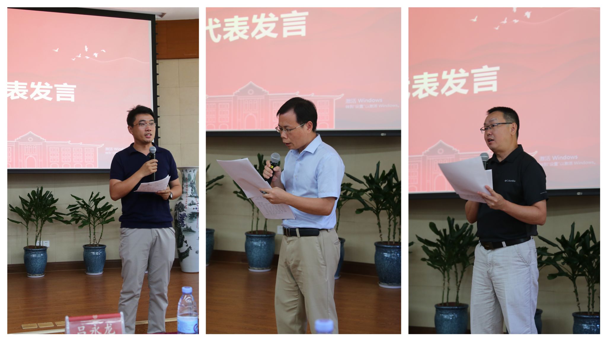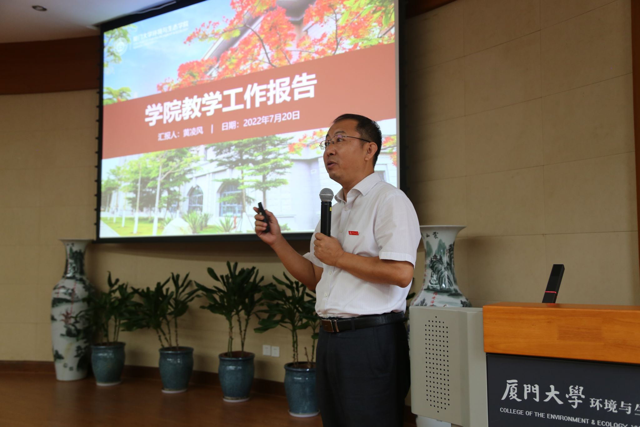 黄凌风作学院教学工作报告,全面回顾了学院近年来教育教学取得的成绩,在深化探索复合型、创新型和个性化人才培养模式、生态校园建设、开放办学、教学成果等方面取得一定的进展。他指出,未来要坚持立德树人,优化课程思政体系;要深化教学改革,促进学生全面发展;要完善教师成长体系,提升教师教书育人能力;要实施“一流课程”与“精品教材”工程,加强教学成果培育。