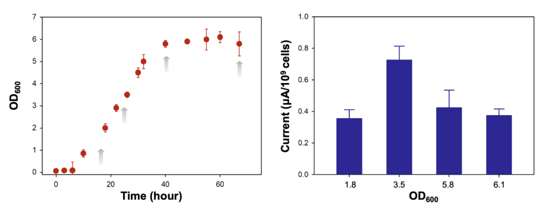 图3. 不同生长阶段Shewanella onedensis MR-1电化学活性的测定