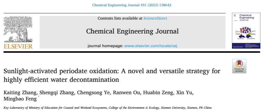 近日,我院于鑫教授团队在环境领域高水平期刊Chemical Engineering Journal上发表了题为“Sunlight-activated periodate oxidation: A novel and versatile strategy for highly efficient water decontamination”的研究论文。本研究首次报道了太阳光作为一种天然活化剂可强化高碘酸盐(PI)氧化实现水中新污染物的高效去除,为开发可持续、多功能净水技术提供了一种全新思路。