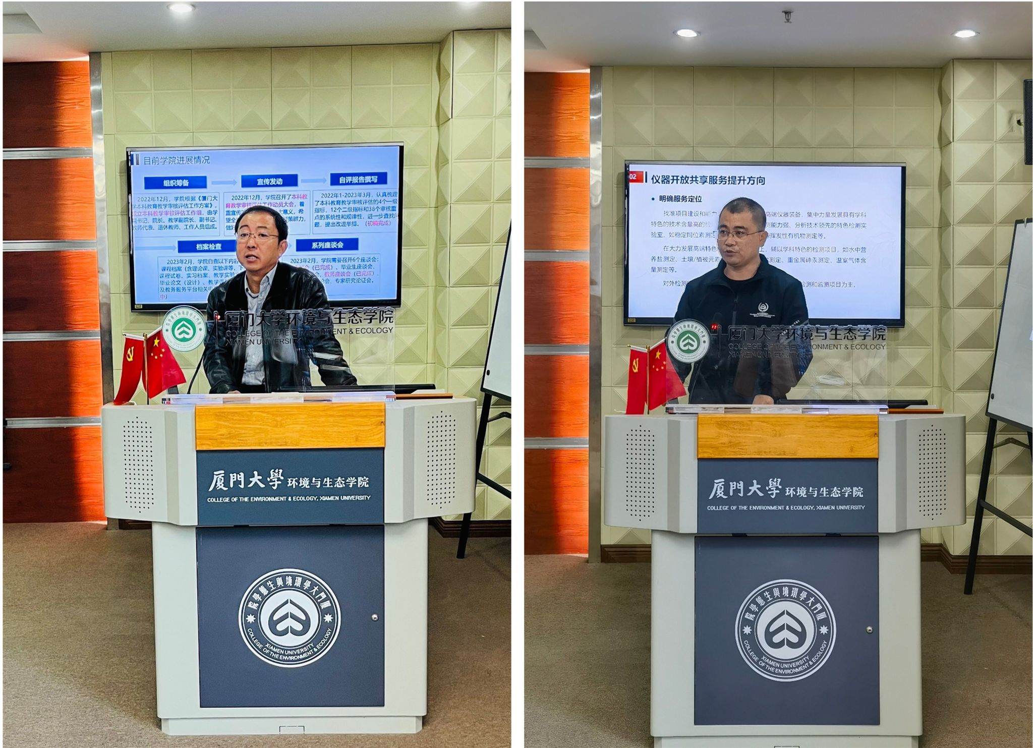 副院长黄凌风、马剑分别围绕推进本科教育教学审核评估工作、学院公共仪器平台服务改革等作专题报告。黄凌风提出,要以新一轮本科教育教学审核评估为契机,深化落实本科教育改革创新,实现内涵发展、特色发展,推动学院本科教育教学质量不断提升。马剑在分析公共仪器平台发展现状基础上,提出扩大服务和提质增效的规划方案,建议应重点提升学科特色领域的分析测试能力与水平。