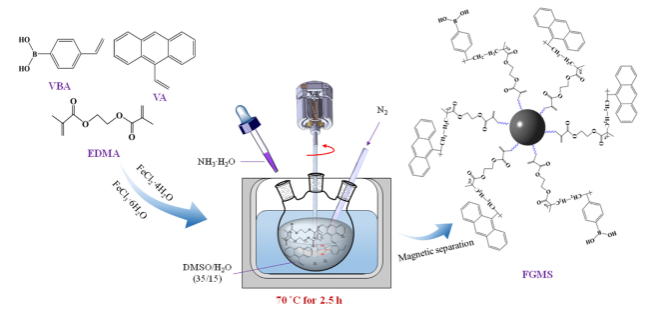 2020级本科生张浩坤等完成的大创项目《磁固相萃取-色谱联用技术及其在复杂样品中汞形态分析的应用研究》中磁性吸附材料FGMS的制备过程