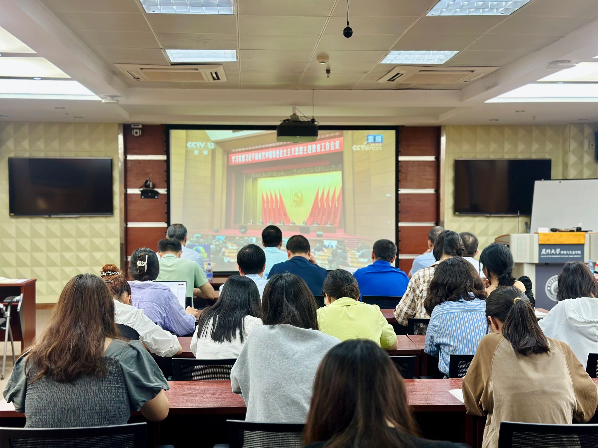参加会议的还有学院全体领导班子、科级以上党员干部、辅导员,全体师生党支部书记及部分党员代表。