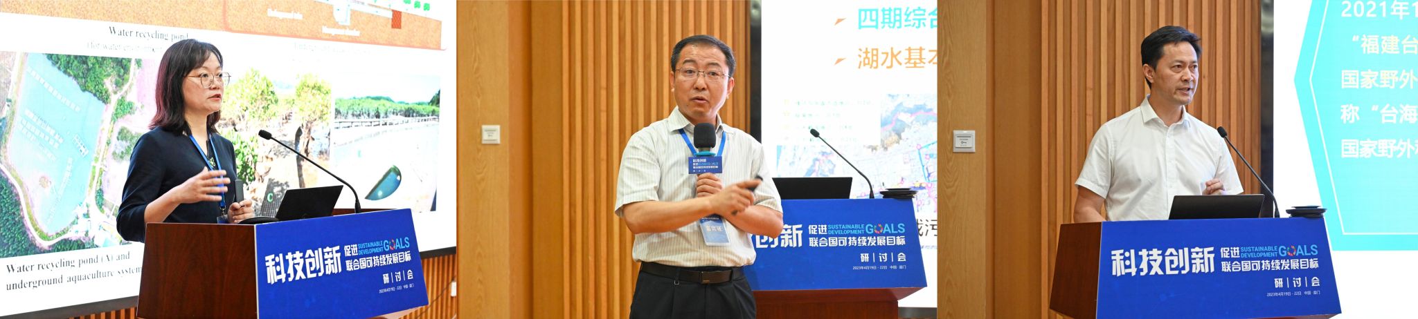 厦门大学环境与生态学院陈鹭真、黄凌风、陈能汪教授分别介绍了我校在可持续发展相关领域的研究成果和创新实践典型案例:
