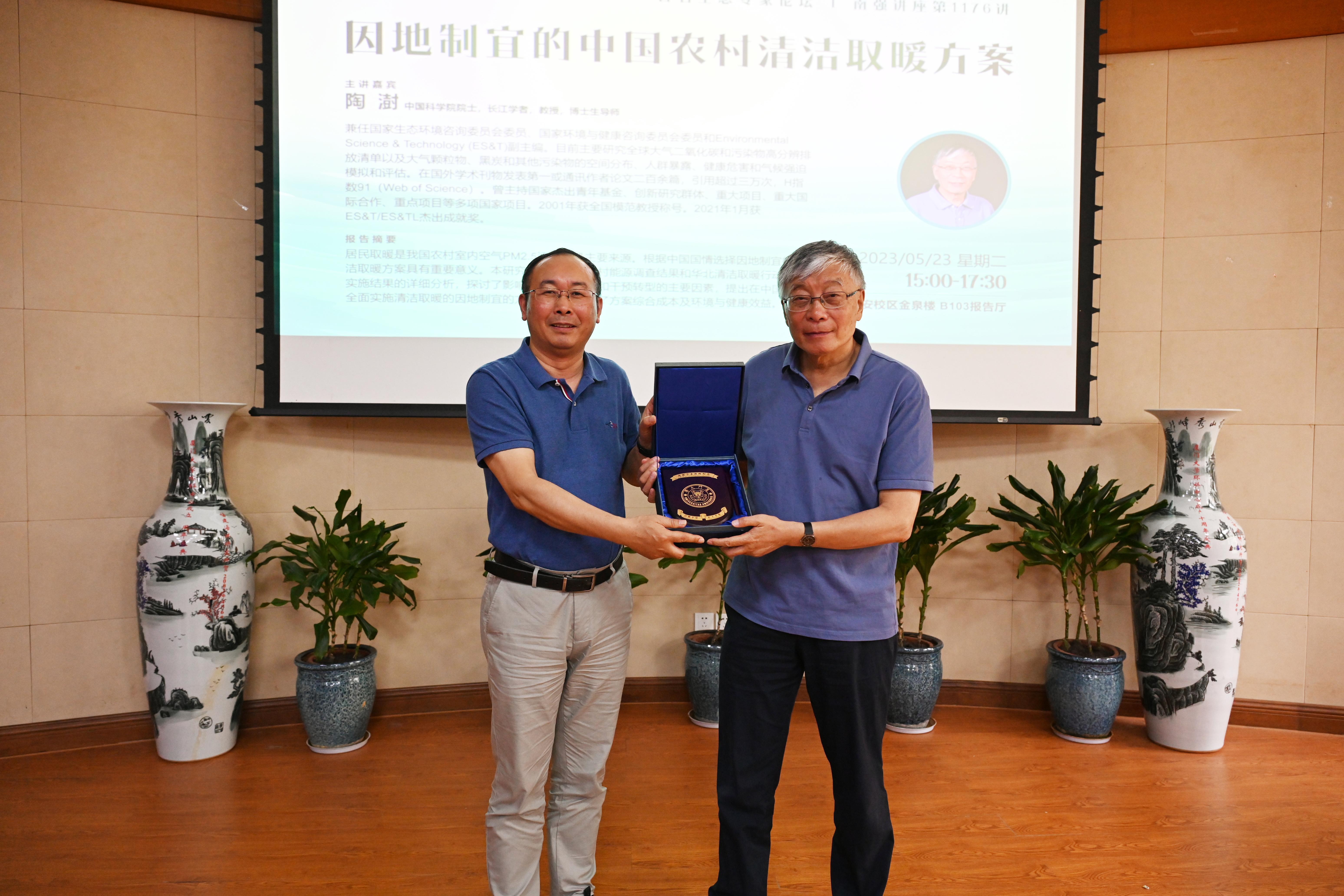 报告开始前,学院院长吕永龙教授向现场师生介绍了陶澍院士的基本情况,并代表学校为其颁授“厦门大学南强讲座纪念牌”。