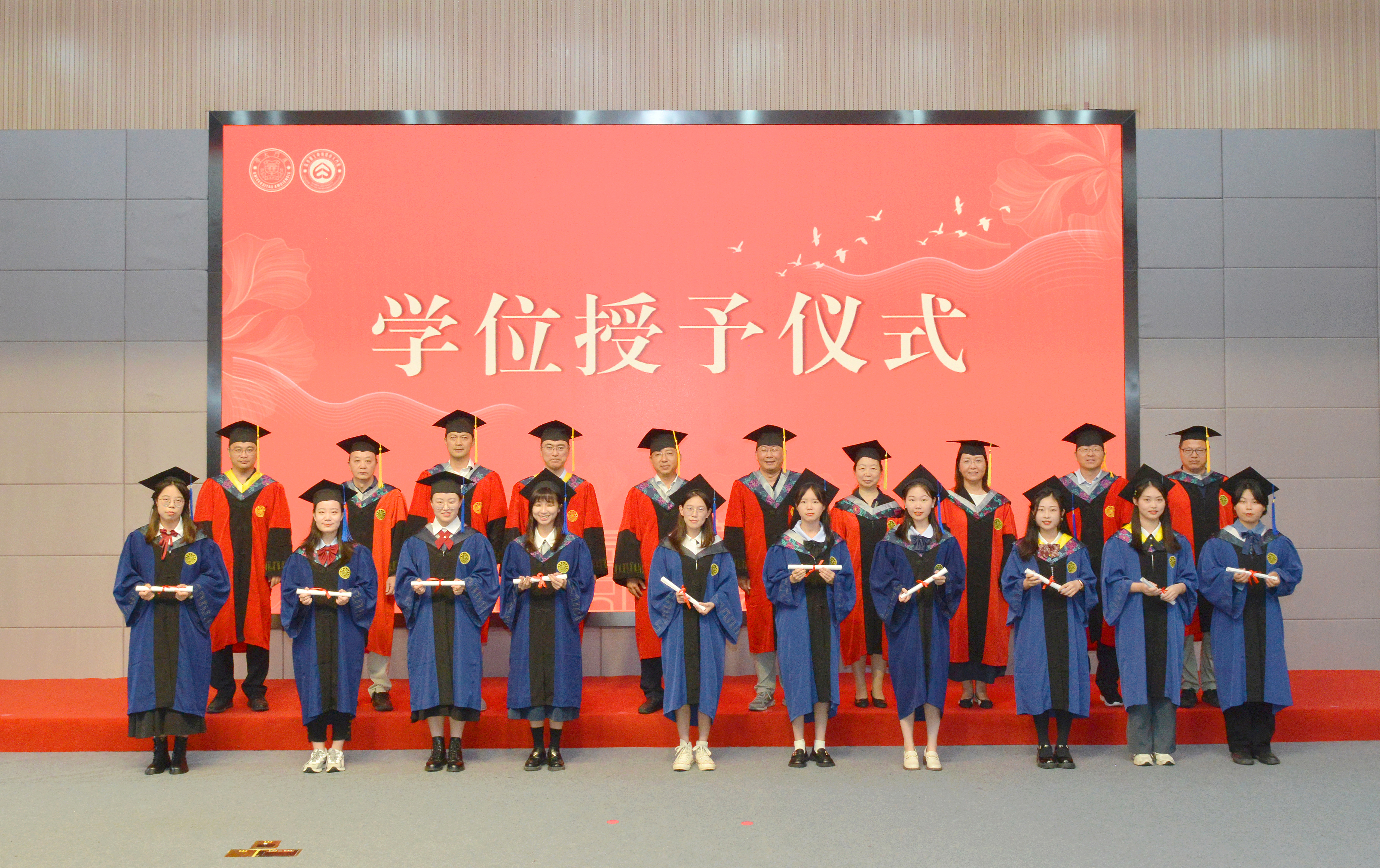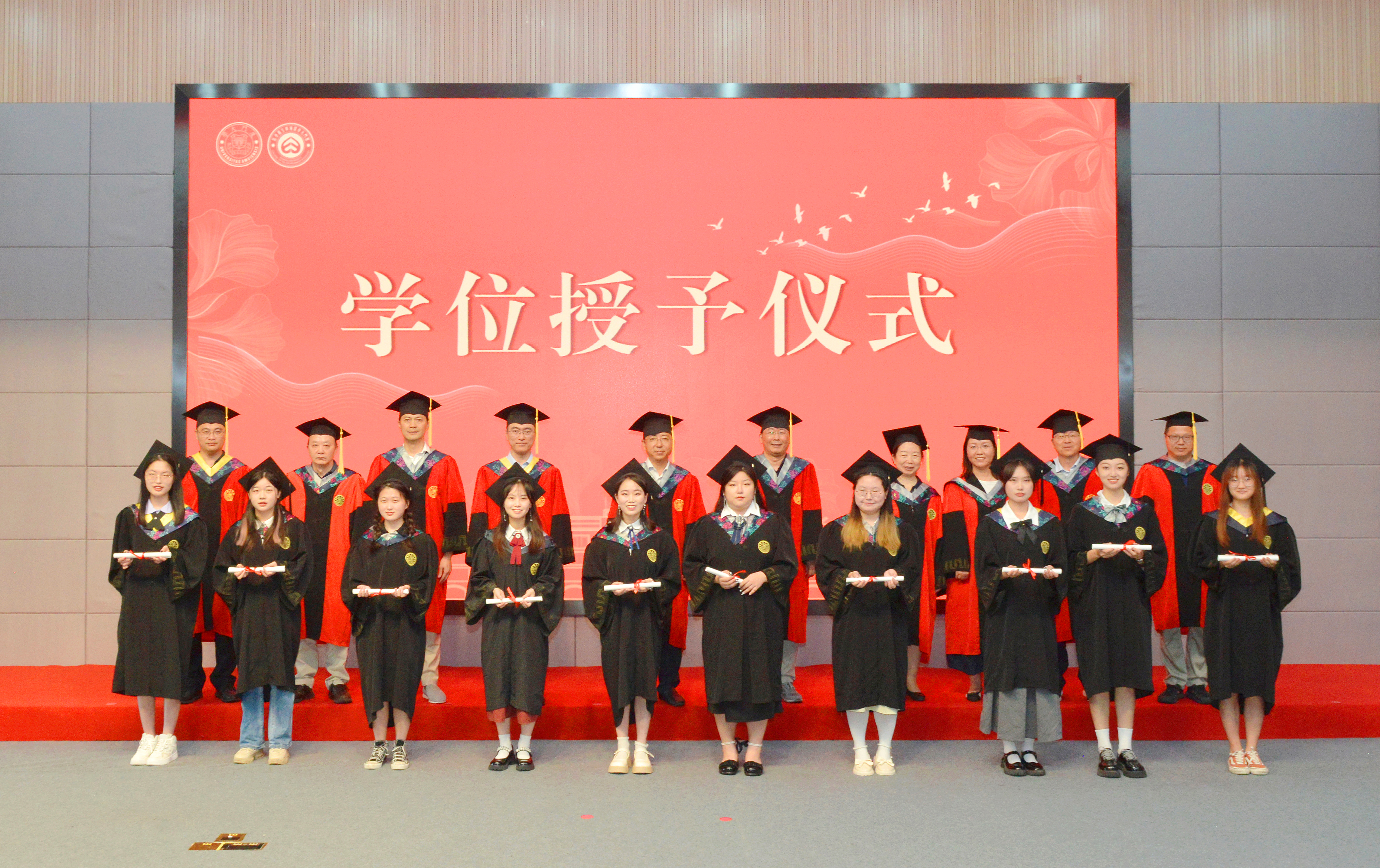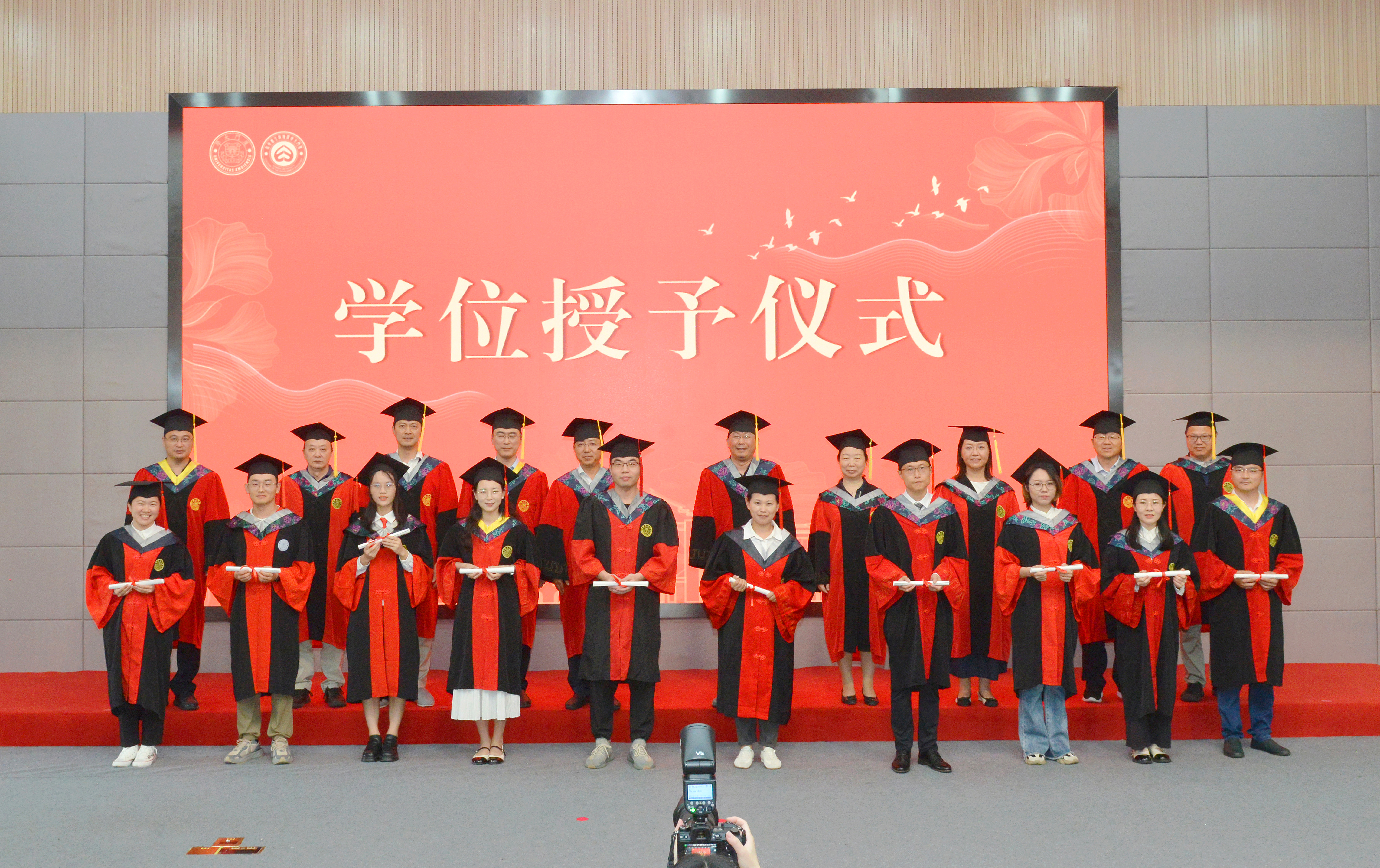 在学位授予仪式上,副院长黄凌风教授首先宣读授予博士学位、硕士学位和学士学位名单。接着学院学位评定委员会委员为2023届毕业生一一援正流苏并合影留念。