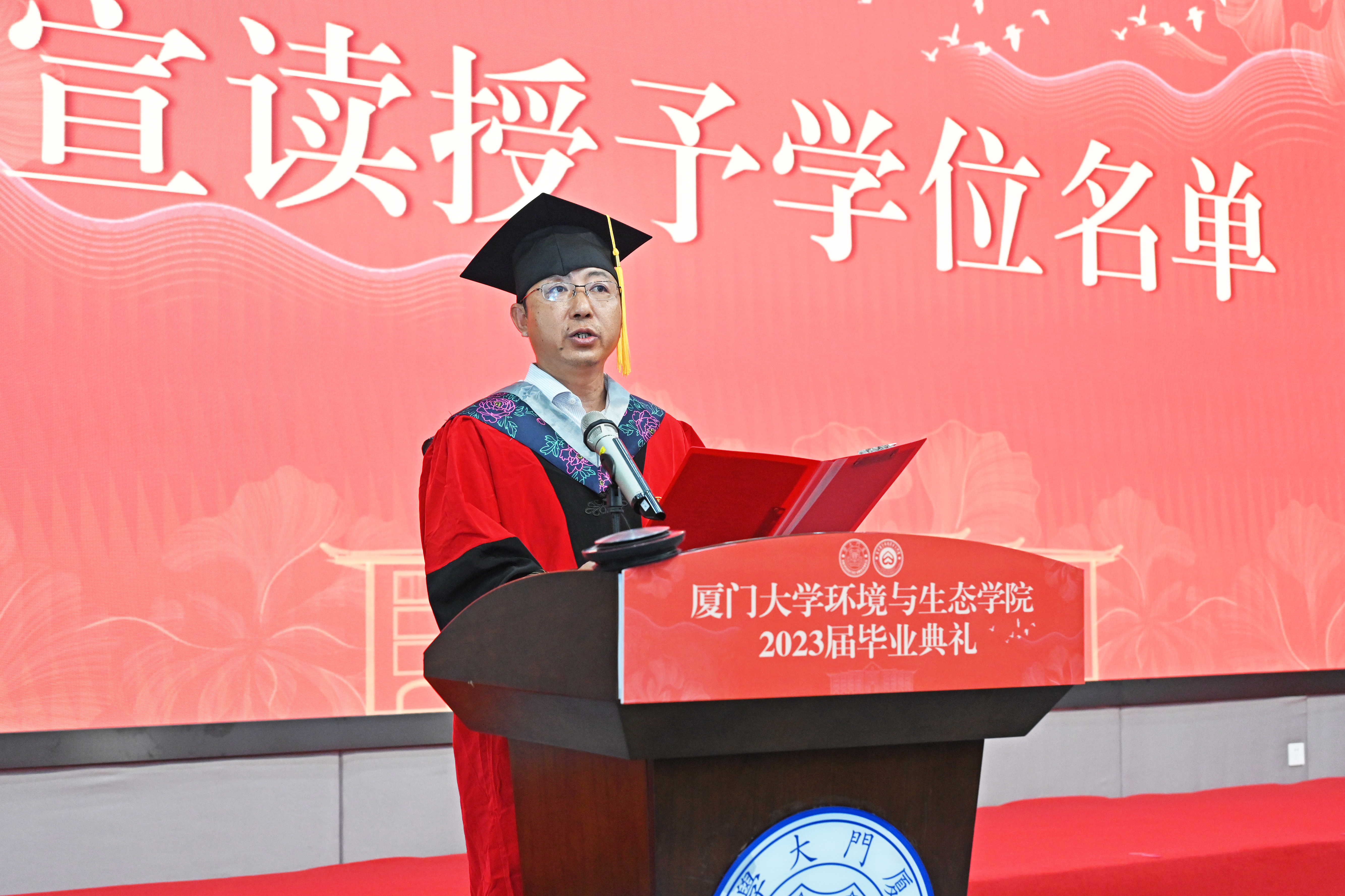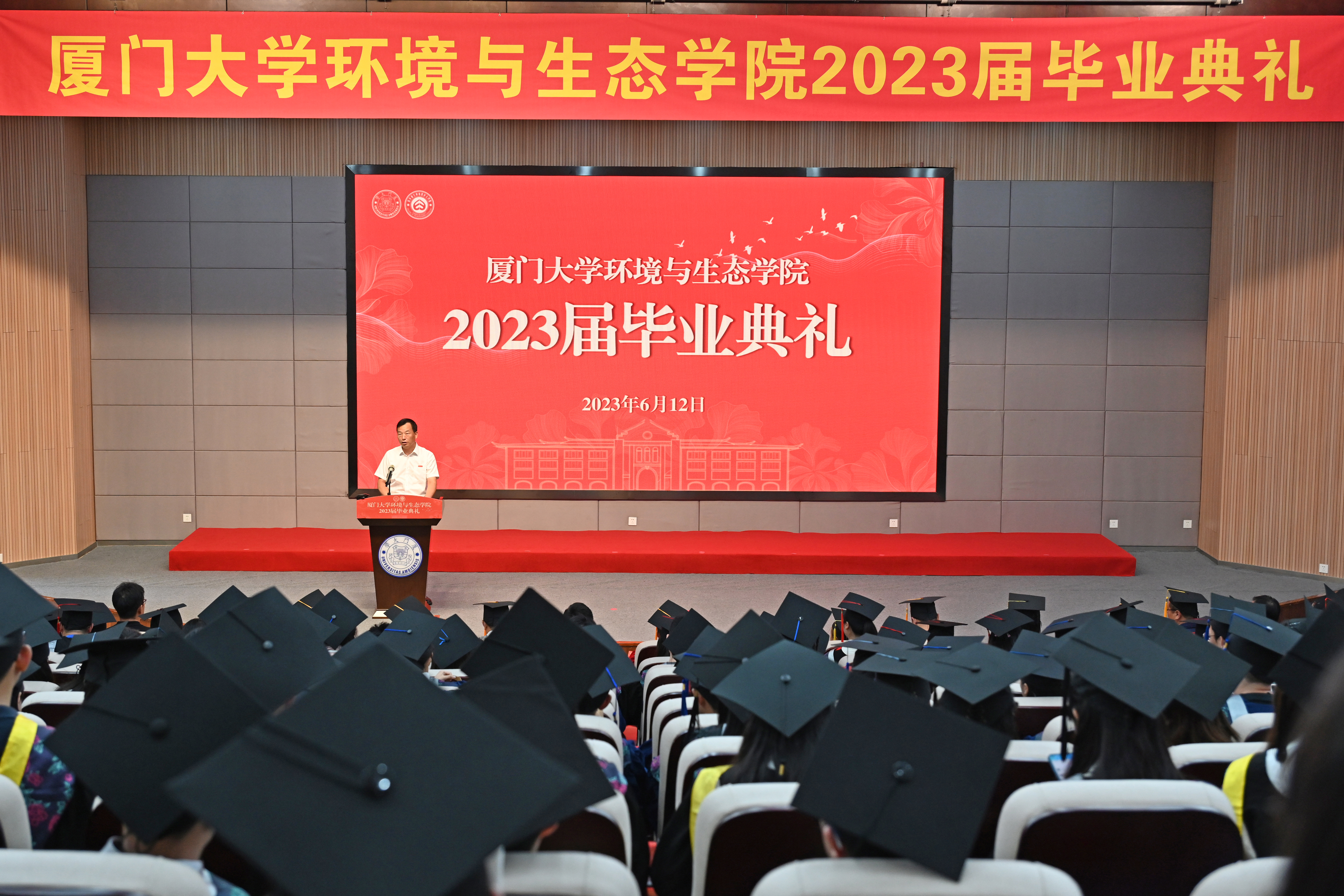 骄阳似火绿意浓,凤凰花开红如霞。6月12日下午,我院“环环相依 生生不忘”2023届毕业典礼在翔安校区德旺图书馆2号报告厅如期举行。学院党政领导、各系负责人、教师代表、行政及后勤物业工作人员代表、全体辅导员和部分学生家长出席了本次毕业典礼,共同见证2023届全体毕业生这一重要的时刻。本次典礼采取线上线下相结合的形式进行。活动由学院党委副书记蔡虎堂主持。