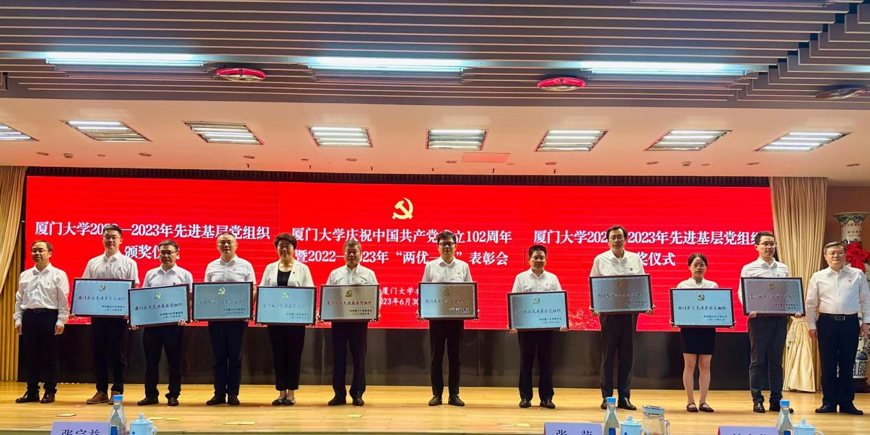 6月30日下午,“厦门大学庆祝中国共产党成立102周年暨2022—2023年‘两优一先’表彰会”在思明校区科学艺术中心一楼多功能厅召开。
