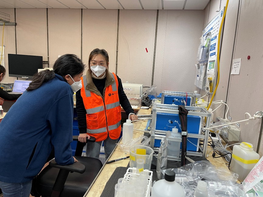 据悉,为确保航次的顺利进行,团队在出发半年前就进行了精心的准备。利用2023年春节期间进行了数次会议,讨论出访预案,尽全力保证从签证到物流、从试剂准备到仪器调试等多个环节万无一失。春节假期未结束,团队根据制定的预案,紧锣密鼓地开展了航次营养盐测定的预演以及物资准备,保证了航次任务有序开展。本次航行尽管海况恶劣,在完成比对任务之余,团队成员也不忘进行学术交流,了解和学习各个国家测定海水营养盐方法的精华之处,跟领域内经验丰富的学者就仪器如何继续提升进行了深入的交流,在研讨会上介绍厦大的最新海洋生物地球化学科学进展以及仪器研发的最新成果,得到了国际同行的关注和赞赏。