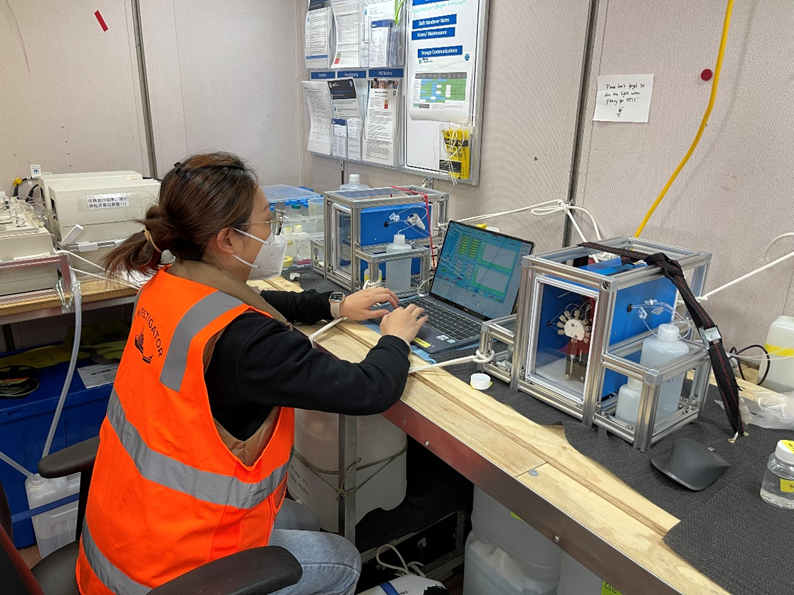 方腾越在船上操作自研仪器iSEA