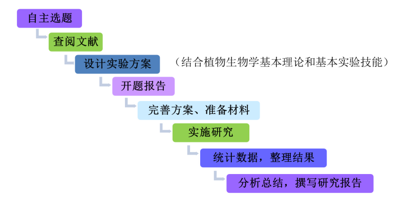 植物生物学实验课程是植物生物学理论课程的重要实践性教学环节,除了完成课程常规计划实验教学的内容外,该课程借鉴国外高校“研讨式教学”和“兴趣导向式”实验教学模式,于2018年开始推行以学生为主、教师指导和辅助的学生自主设计实验翻转教学,该教学环节通过以兴趣为导向、强化学生自主性、探索性的学习过程。在翻转教学中,以学生自主设计实验项目为载体,鼓励学生在自主设计实验中融入体现“高阶性”、富有“创新性”和一定“挑战度”的内容,进一步加大了对学生的知识、能力、素质和兴趣的多维度培养,形成了独具特色的植物生物学自主实验教学体系和教学方式。