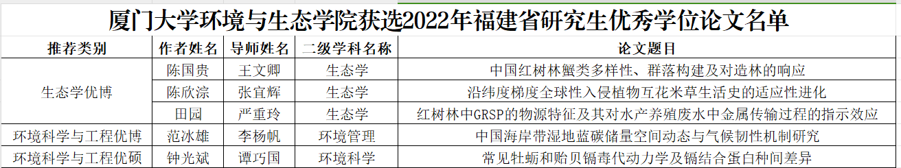 日前,福建省学位委员会办公室公布了2022年福建省研究生优秀学位论文评选结果。今年,我院共申报了4篇博士论文、3篇硕士论文参选。根据结果共有5篇论文获奖,申报成功率达71%。博士论文全部获奖,申报成功率达到100%。