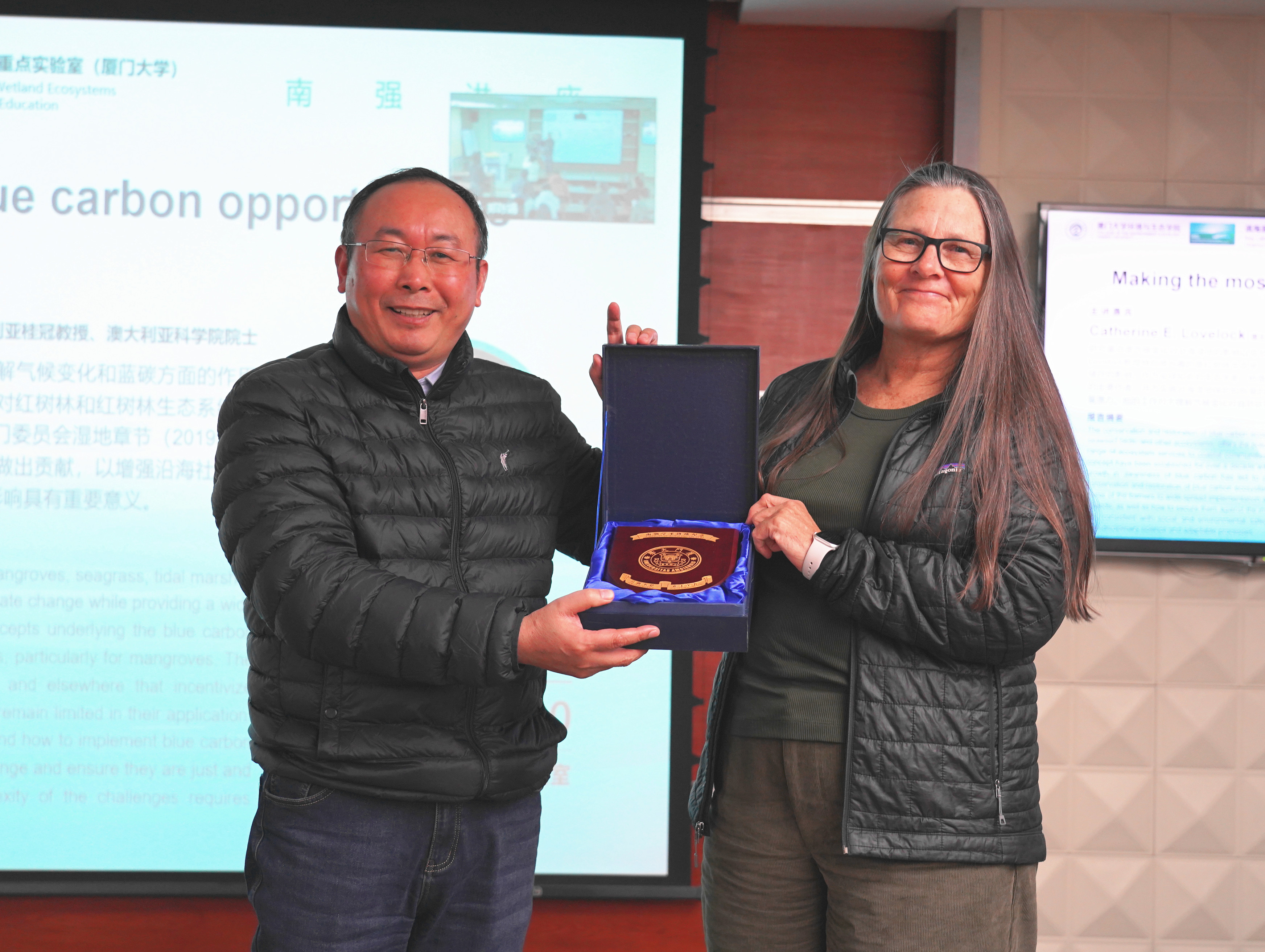 2024年1月23日下午,国际知名专家、昆士兰大学教授、澳大利亚桂冠教授、澳大利亚科学院院士凯瑟琳·洛夫洛克做客厦门大学“南强学术讲座”,在学院A239为师生带来题为“充分利用蓝碳机遇”的专题学术讲座。