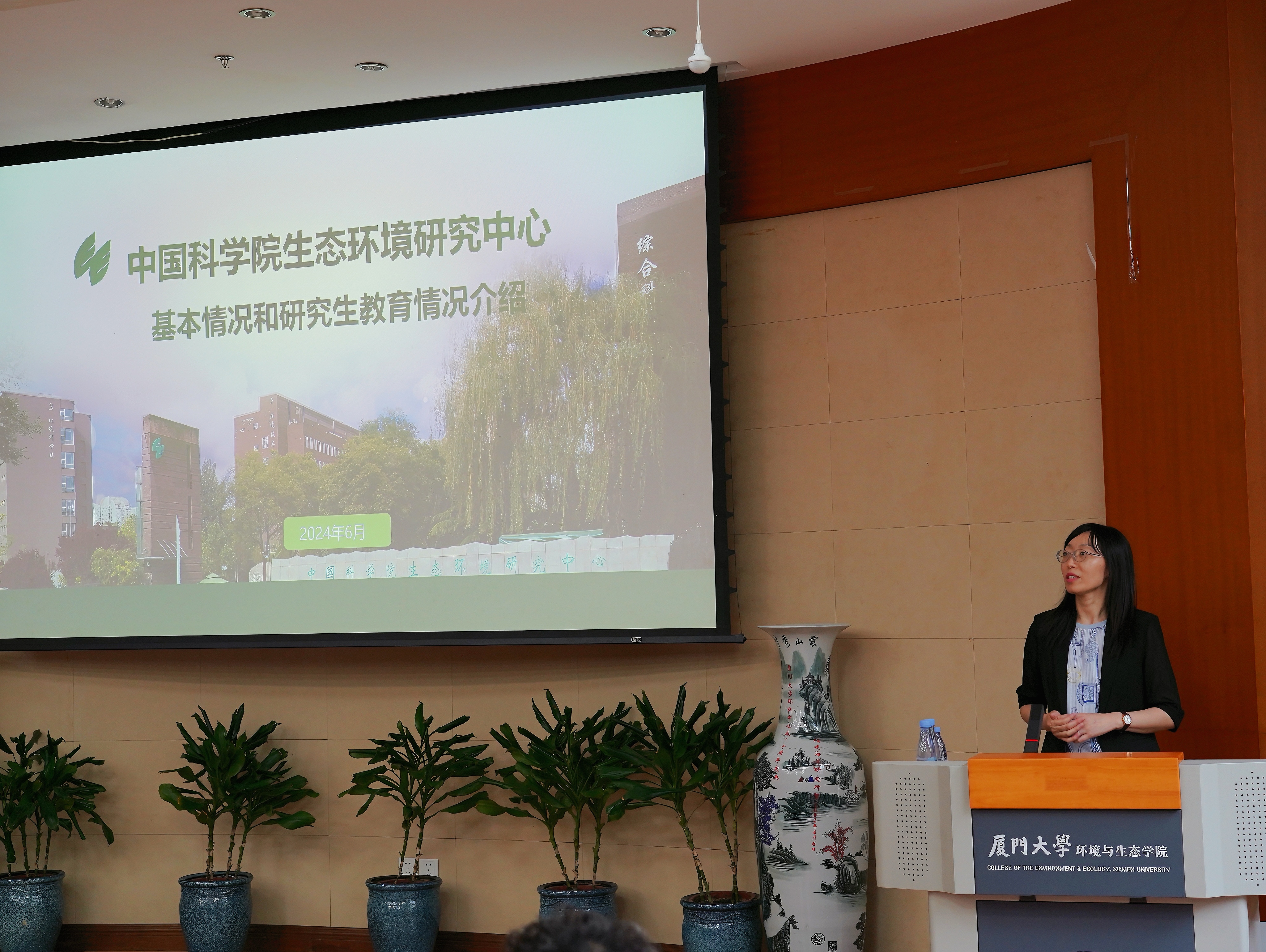 连静首先进行中国科学院生态环境研究中心全国优秀大学生夏令营招生宣讲,希望我院更多优秀学子到生态环境研究中心深造,零距离体验生态环境与健康科学的魅力。她从生态环境研究中心的历史沿革、历史贡献、使命定位、方向布局和组织团队、学科和实验室布局、科研平台等方面向大家详细介绍了中心的基本情况,并从学科方向、研究生人才培养目标、研究生学术训练、就业情况等方面介绍了中心的研究生教育情况。
