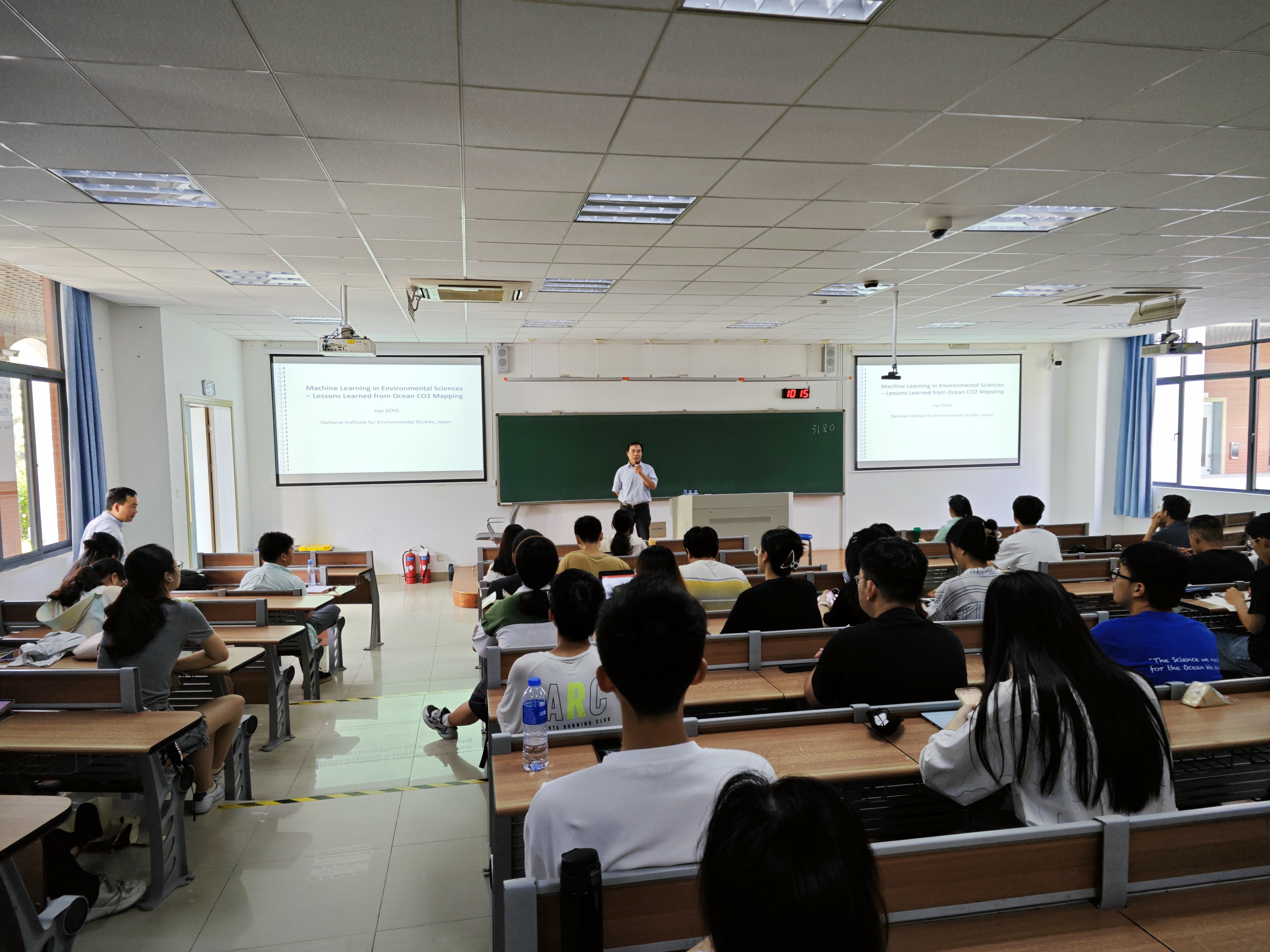 第七场讲座是由日本国立环境研究所曾继业研究员主讲。曾继业介绍的主题为机器学习在环境数据挖掘中的应用及其存在的一些问题。他从卫星观测、大气观测、森林观测和海洋观测的背景切入介绍FNN、RF、GBM 和 SVM四个模型,最后讲述了海洋二氧化碳绘图,勾起同学们对于机器学习的好奇心。