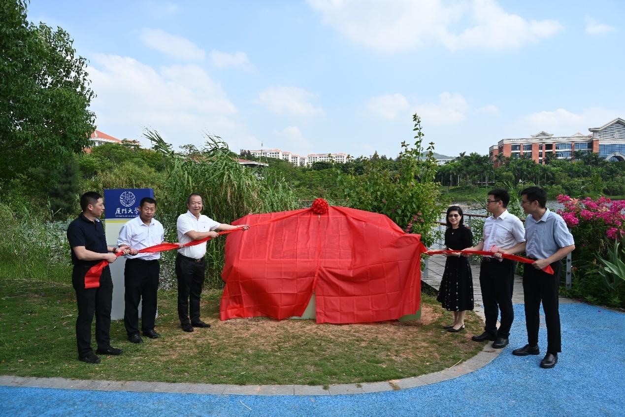 9月3日上午,翔安校区环芙蓉湖生态科普项目揭牌仪式在美丽的芙蓉湖畔顺利举行。中国农业银行厦门市分行党委委员、副行长陈亚劲,中国农业银行厦门市分行机构业务部总经理汪翔,我校校长助理、翔安校区管委会主任陈光,后勤集团党委书记马龙,环境与生态学院党委书记王晟,教育发展基金会秘书处副秘书长徐滨共同为环湖生态科普揭牌。