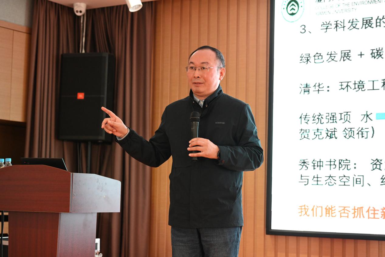 学院副院长于鑫和环境科学系主任陈能汪分别作《全国环境学科发展概况与A类对标分析》《厦门大学环境学科发展规划(2025-2030年)》主题报告,从学科概况、定位和规划及学科交叉研究这几个方面介绍了现状、问题、目标及举措。