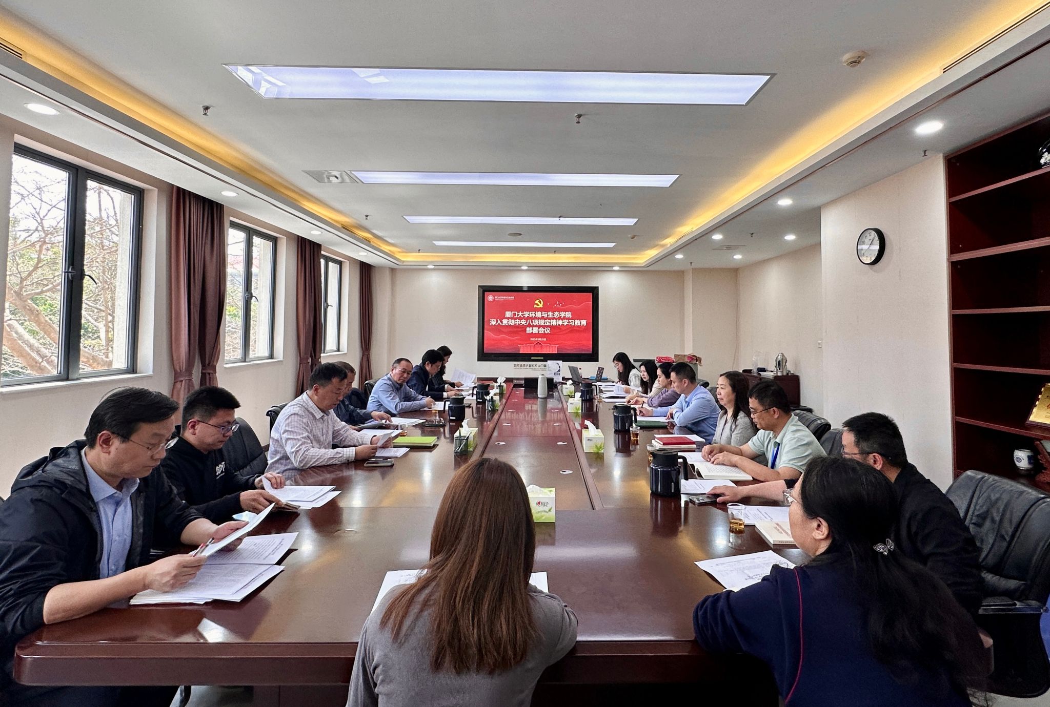 党委书记王晟传达了学校深入贯彻中央八项规定精神学习教育工作部署会议精神,介绍了《厦门大学环境与生态学院深入贯彻中央八项规定精神学习教育实施方案》有关要求,并对学院开展学习教育工作进行了动员部署。党委副书记蔡虎堂主持会议并强调学习纪律要求。