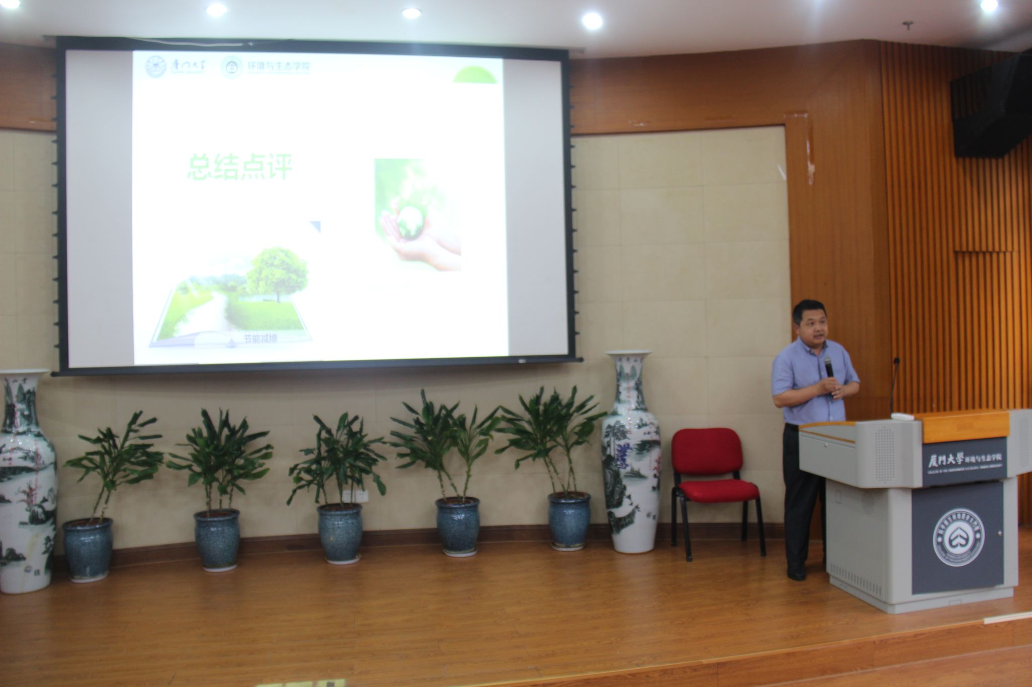 5月10日下午,由厦门大学教务处、共青团厦门大学委员会和环境与生态学院联合主办的厦门大学第十一届节能减排社会实践与科技竞赛决赛在金泉楼B103报告厅举办。环境与生态学院党委副书记蔡虎堂、校团委挂职学生副书记王少彬等领导、嘉宾,以及本次大赛评委黄晓佳教授、张金宝教授、沈英嘉教授、周克夫副教授、刘景春副教授出席比赛。