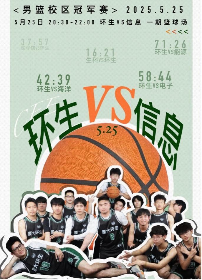5月25日晚,2025年厦门大学“超级杯”篮球联赛翔安校区总决赛在一期篮球场如期举行,我院将与信息学院展开对决。自3月22日开赛以来,我院本科生男篮一路披荆斩棘,以小组第一的成绩进入四强赛,后以42:39的成绩战胜海洋男篮挺进总决赛,创下历史最佳成绩。