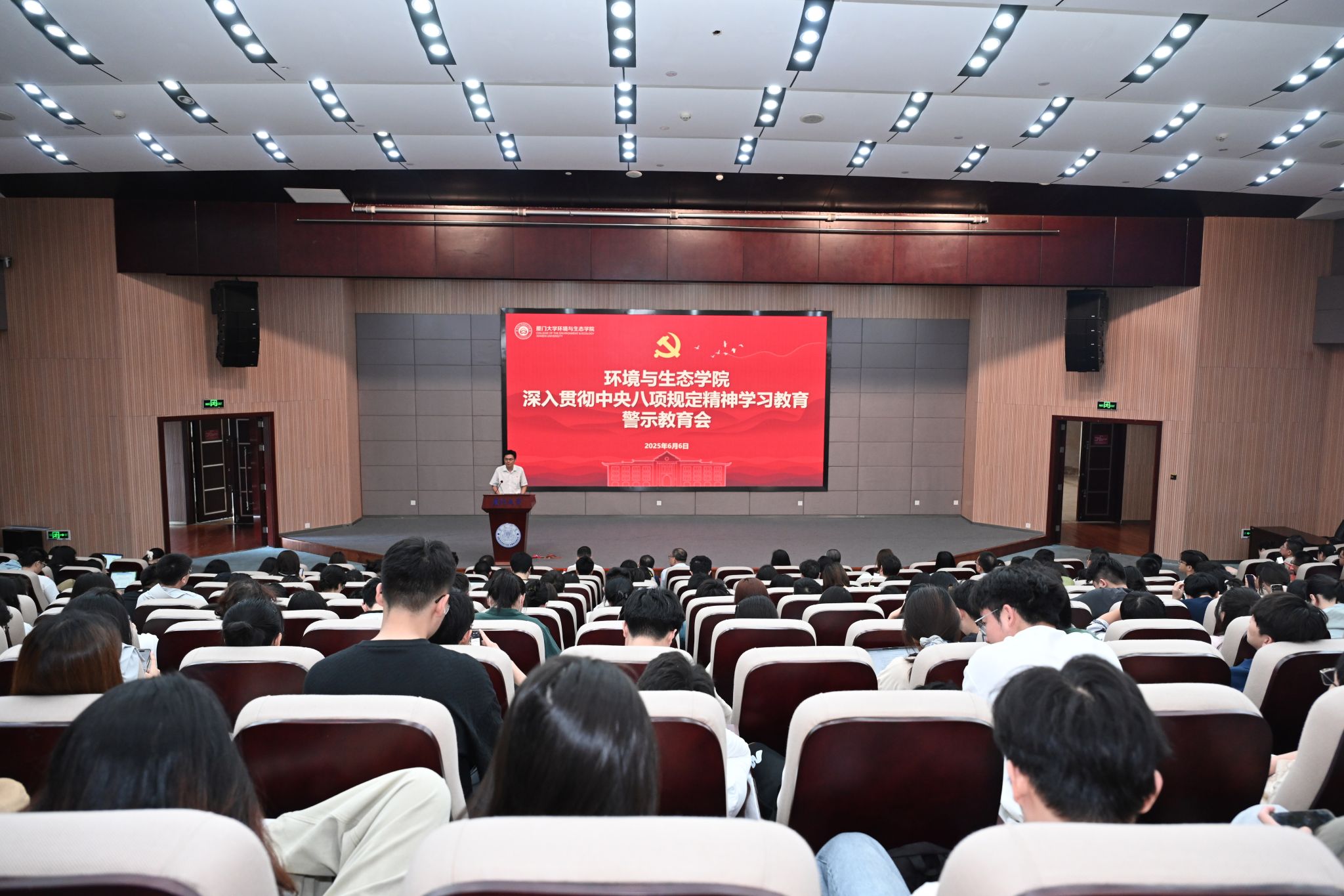 6月6日中午,学院在德旺图书馆2号报告厅召开深入贯彻中央八项规定精神学习教育警示教育会。全院师生党员参会,基层党建联络员王康平列席会议,学院党委书记王晟主持并做中央八项规定精神主题党课。