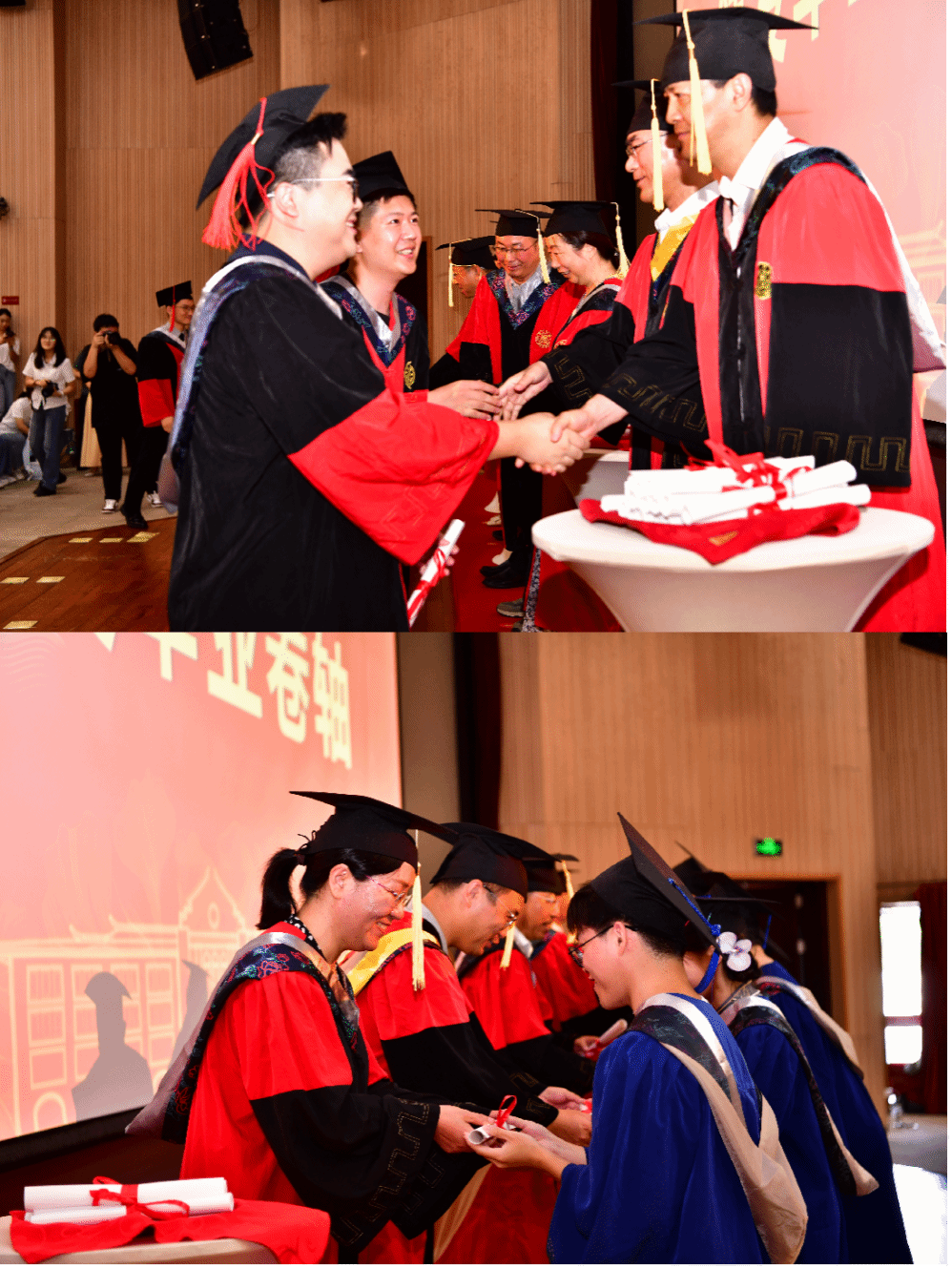 今年,学院为每位毕业生精心准备了一份饱含深意的毕业赠礼——专属毕业卷轴,卷轴之内书写着老师们亲笔题写的殷切寄语,由学院学位评定委员依次颁发给毕业生并合影留念。