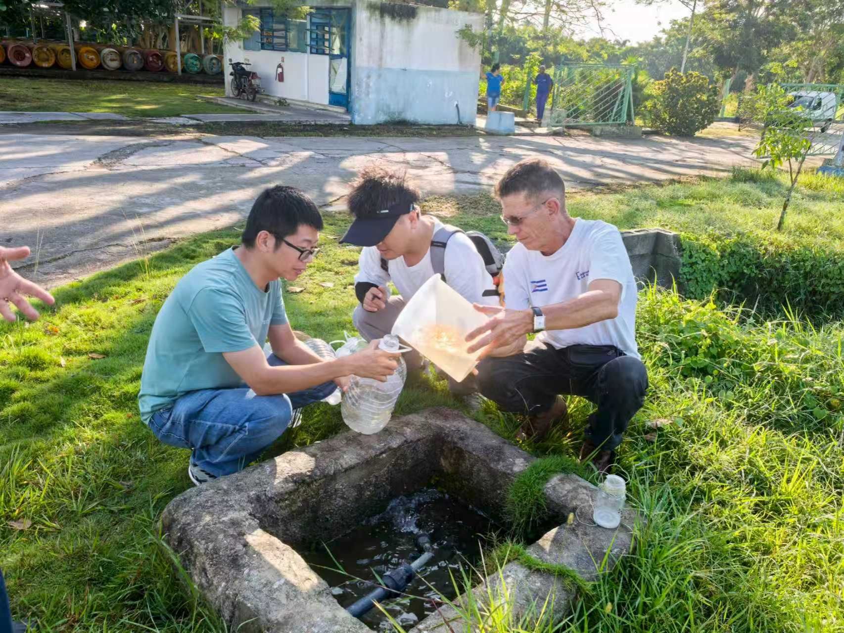 冯明宝(左一)在古巴采样