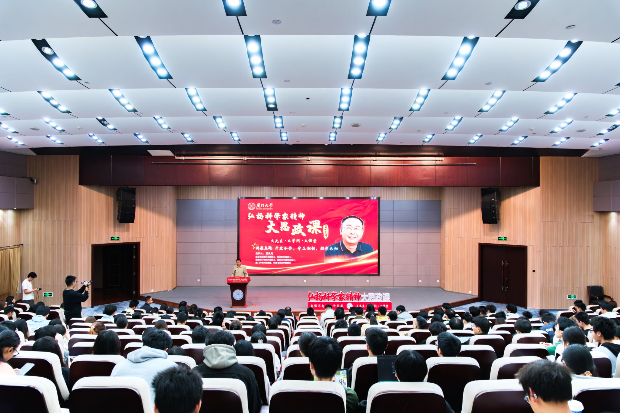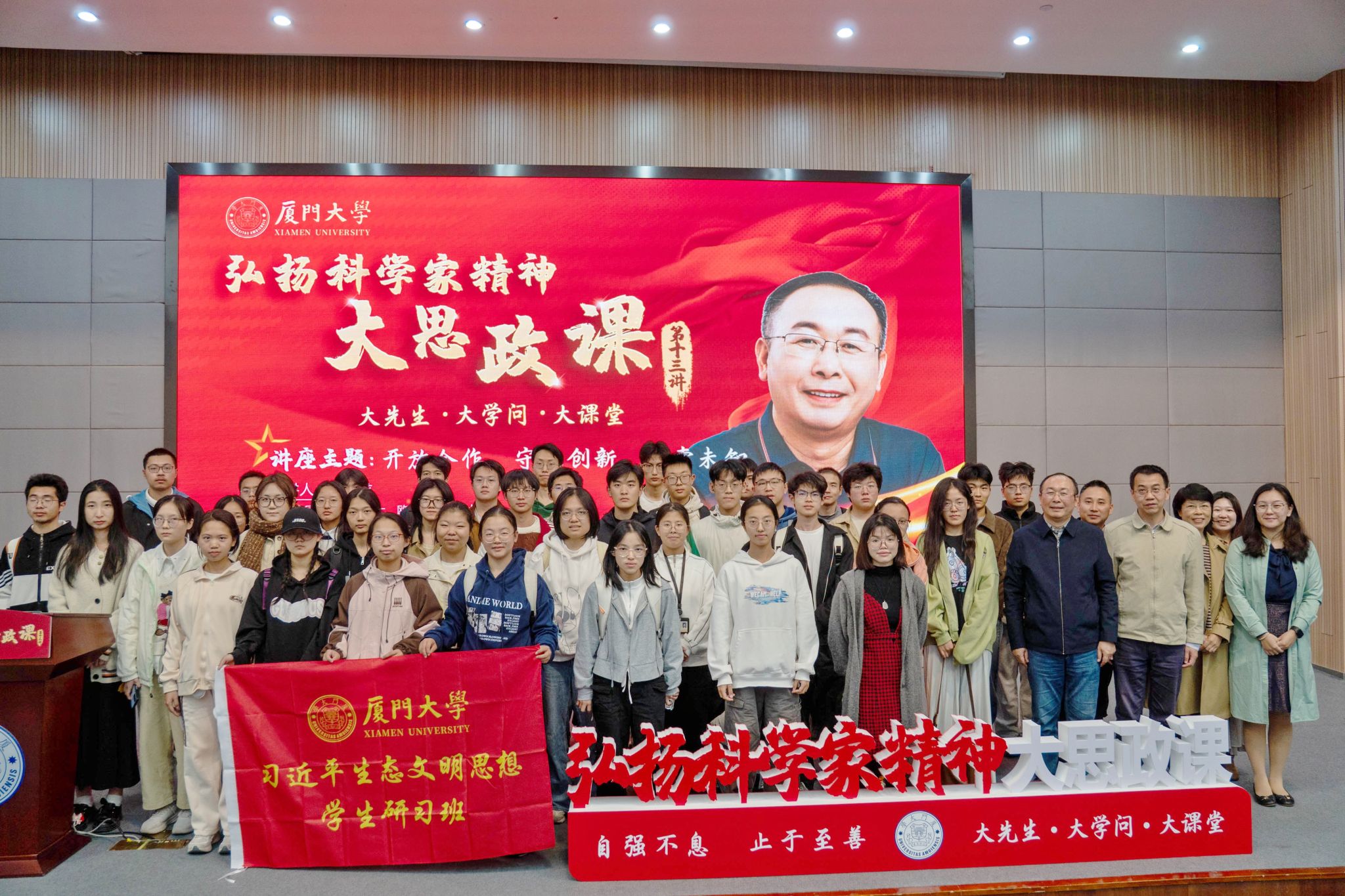 为进一步传承弘扬科学家精神,凝聚青年学子在可持续发展与环境治理领域的使命担当,12月4日晚,厦门大学弘扬科学家精神大思政课(第十三讲)在翔安校区德旺图书馆2号报告厅开讲。发展中国家科学院院士、欧洲科学院院士、俄罗斯科学院外籍院士、国际科学理事会会士、厦门大学讲席教授、环境与生态学院院长吕永龙教授以“开放合作、守正创新、探索未知”为题,阐释科学家精神的时代内涵,与校区各学院及厦门大学习近平生态文明思想学生研习班的师生展开一场深度对话。环境与生态学院党委副书记杨扬、王旖旎以及翔安校区学生办秘书蒋超杰出席讲座。讲座由杨扬主持。