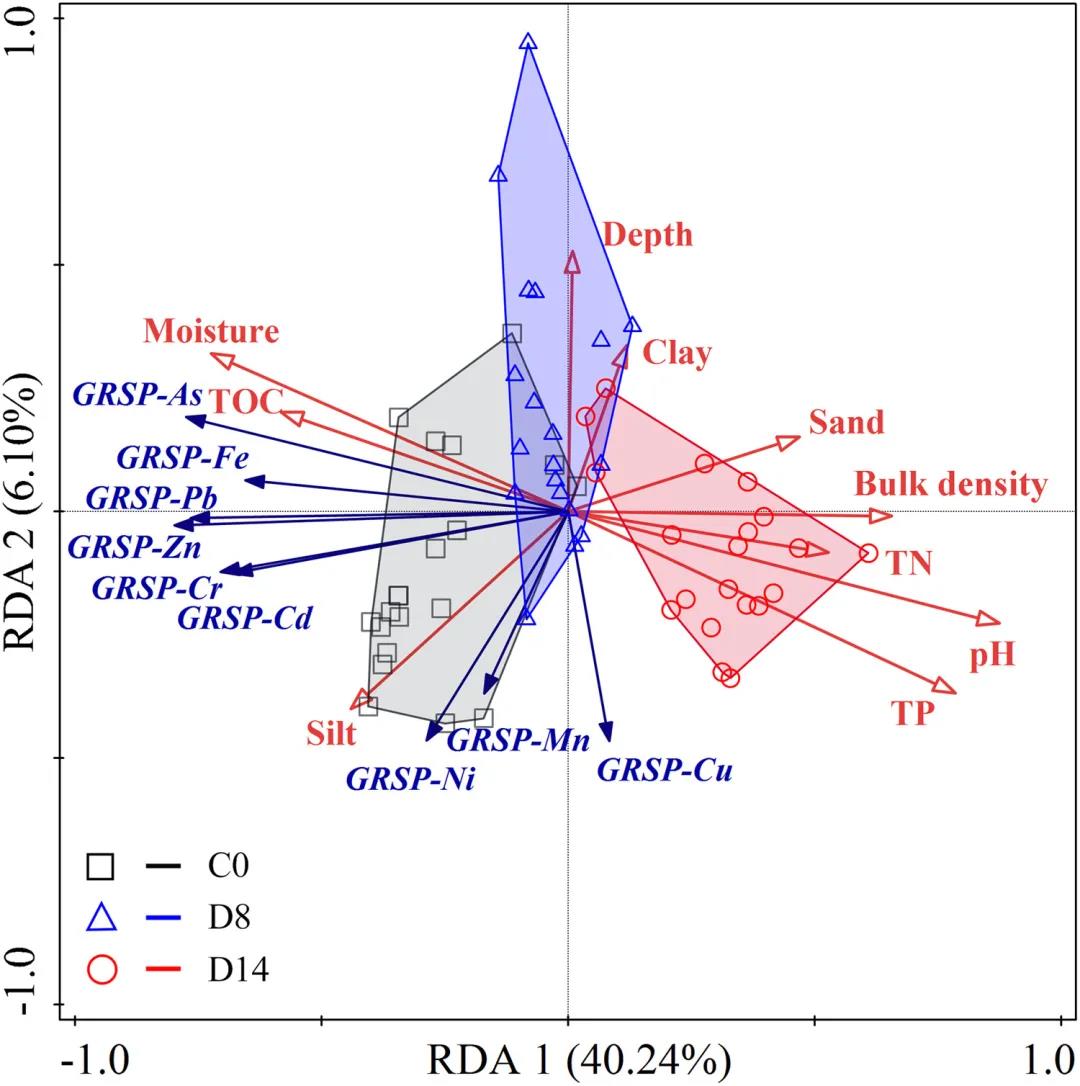 图2.环境因素对球囊霉素相关土壤蛋白结合金属的影响