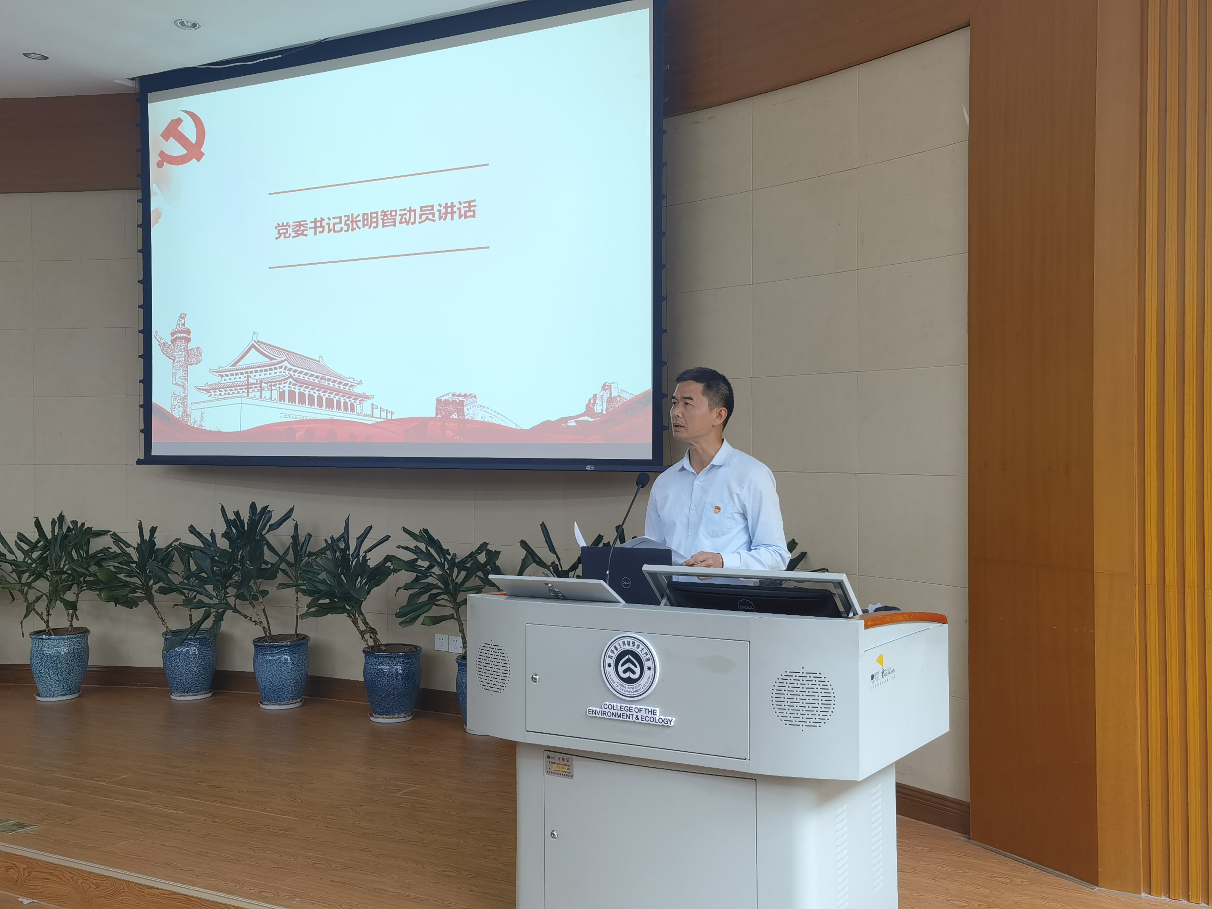 校党史学习教育第一指导组组长、我院基层党建联络员梁卫中,学院党委书记张明智,学院党政领导班子成员,党委委员,系主任及师生代表参加大会。大会由院党委副书记李静主持。