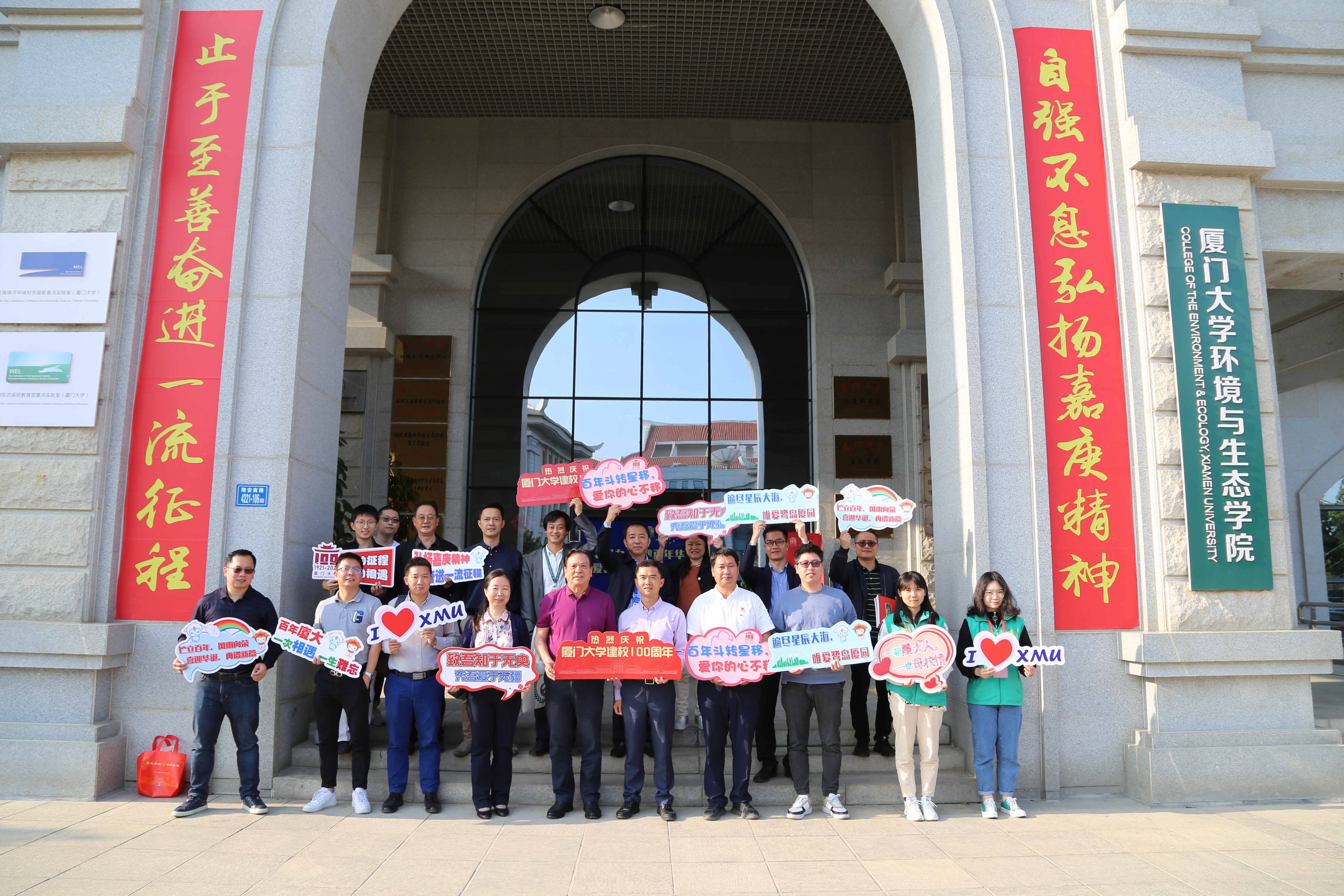 值此厦大百年校庆之际,环境与生态学院全体师生将深入学习贯彻习近平总书记的贺信精神,秉承“自强不息,止于至善”的校训,弘扬“爱国、革命、自强、科学”的优良校风,不忘立德树人初心,牢记育人育才使命,继续投身生态文明和环境保护事业,为建设美丽中国不懈努力,以拼搏抒写壮阔新画卷,以奋斗致敬伟大新时代!