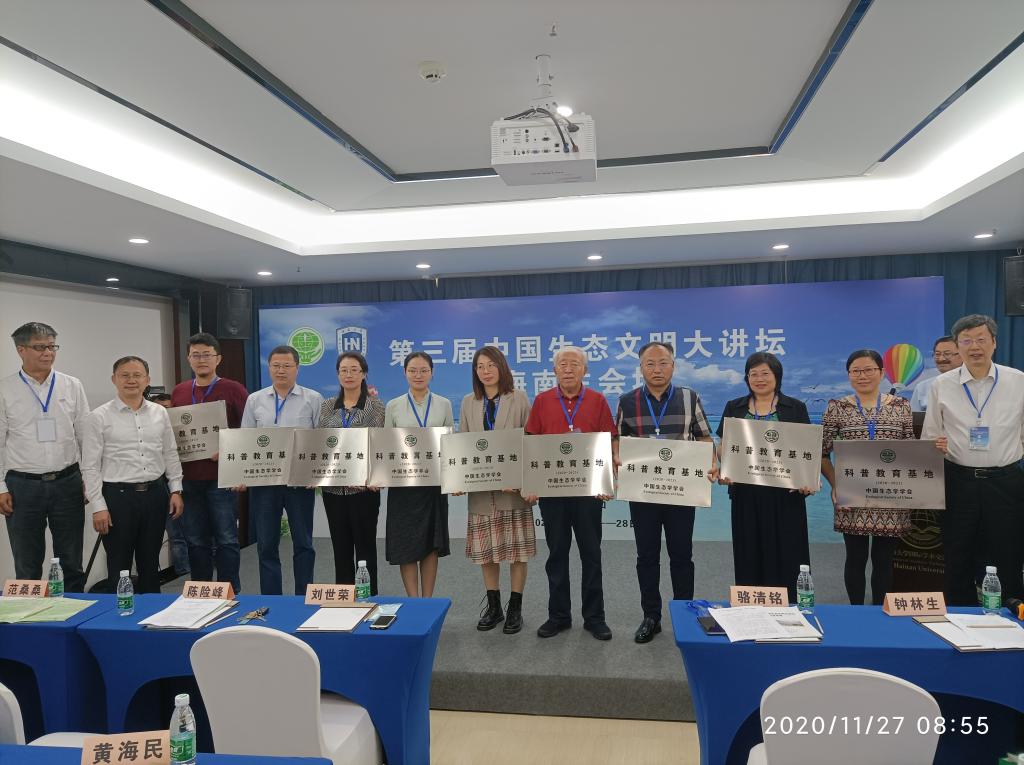 近期,在海南举办的第三届中国生态文明大讲坛会议上,举行了中国生态学学会首批“生态科普教育基地”授牌仪式。厦门大学漳江口红树林教学科研基地(厦门大学环境与生态学院、漳江口红树林国家级自然保护区共同申报)位列其中,成为获批的九个基地之一。王文卿副院长参加了仪式。