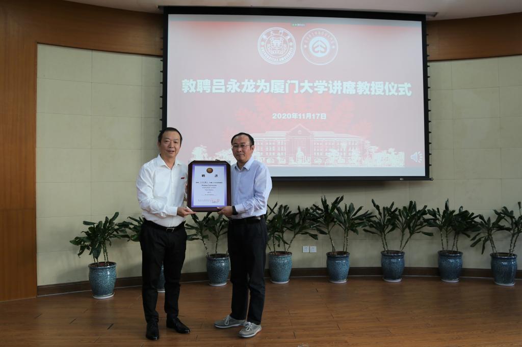11月17日上午,我校敦聘吕永龙教授为厦门大学讲席教授仪式暨南强新睿讲坛第十讲在翔安校区环境与生态学院金泉楼B103报告厅举行。