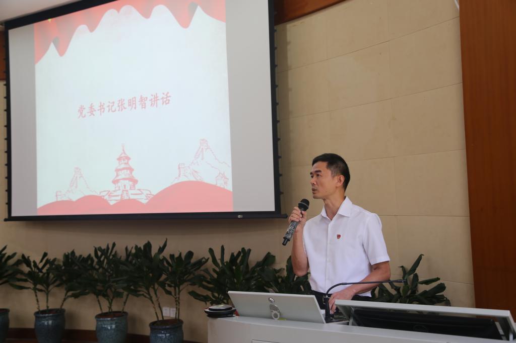院党委书记张明智,党委副书记毛通双、李静,党委委员曹文志、王新红、黄凌风、杨盛昌及各党支部书记、辅导员、受表彰党员等参加了会议。会议采取线上线下相结合方式进行。