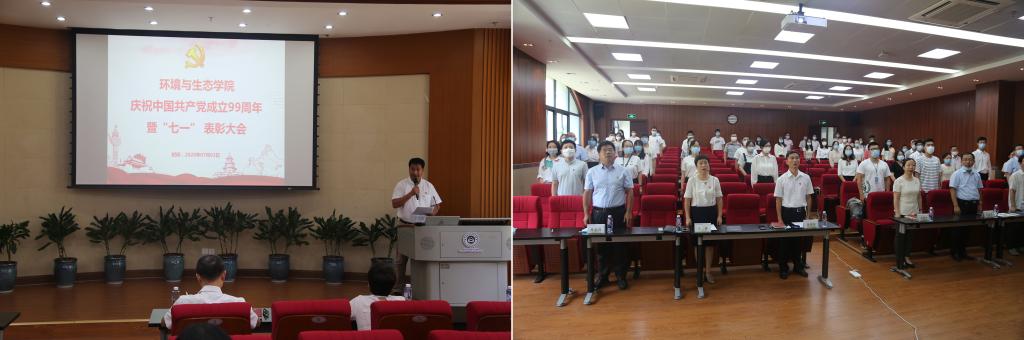张明智在会上讲话。他首先代表学院党委向受到表彰的集体和个人表示祝贺,向全院党员师生致以节日的问候。他说,面对今年突如其来的新冠肺炎疫情,以习近平同志为核心的党中央总揽全局、协调各方,带领全国各族人民万众一心,经过艰苦努力,我国的疫情防控取得了重要战略成果,全面彰显了中国特色社会主义的制度优势。张明智表示,今年是学校迎接建校100周年的冲刺之年,也是我院迎来一流学科建设关键期、“十四五”规划编制、第五轮学科评估等重大任务的关键一年,希望全院各级党组织、全体党员以追求卓越、只争朝夕的奋斗精神,努力开创环境与生态学院党建工作新局面,以一流党建工作引领推动“双一流”建设。一要以政治建设为统领,全面加强党的建设。要把讲政治贯穿于办学治院全过程,进一步强化党组织政治功能,全面加强学院党的建设。二要以立德树人为宗旨,不断提升党建工作质量。把立德树人内化到学院各个领域、各个方面、各个环节,培养更多立志为中国特色社会主义奋斗终生的环境保护和生态文明建设人才。不断加强师德师风建设、师生思想政治工作,全力构建“三全育人”体系。三要以一流建设为目标,持续提升党建引领力。凝聚全院师生智慧和力量完成重点工作,加快构建具有“环生”特色的治理体系,把制度优势转化为治理效能进而形成发展动能,推进“一流”学科建设和学院发展。