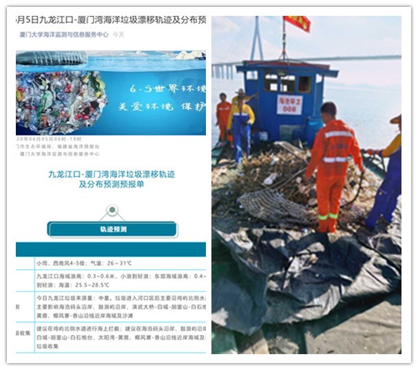 海洋垃圾漂移轨迹及分布预测预报单 厦门环卫部门海上打捞垃圾作业图