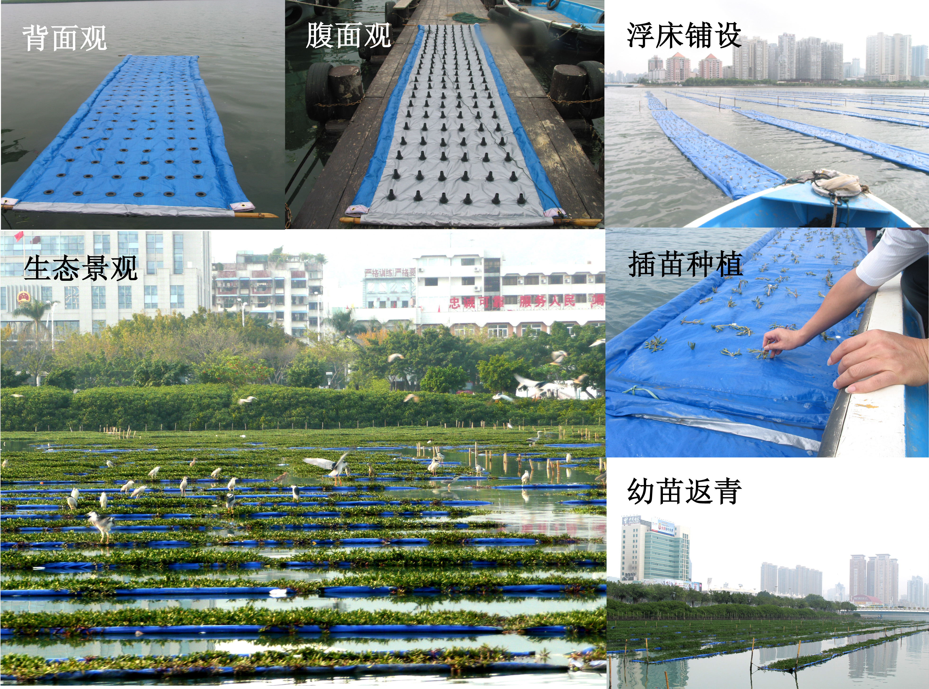 在筼筜湖铺设自行研发的生态浮床开展生态修复